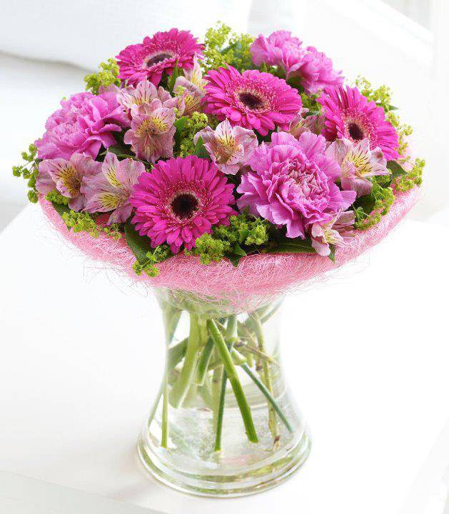 Этот изысканный букет полностью состоит из различных цветов розового оттенка, благодаря чему он выглядит невероятно нежно и изысканно. Гербера, входящая в состав композиции, символизирует радость и веселье, она создана, чтобы дарить радость и улыбку, а гвоздика позволит вам продемонстрировать нежные чувства к получателю, а также свою надежность и готовность помочь. Разные оттенки розового цвета гармонично разбавлены добавлением зелени салала, которая придала букету свежести и эффектности.