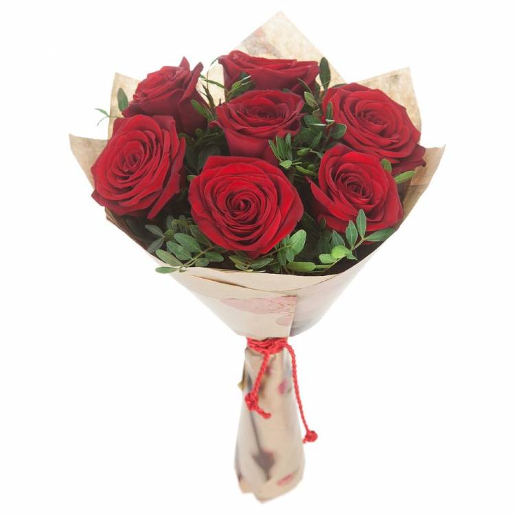 Этот букет выглядит как сама страсть – яркий, безудержный и огненный. 7 роз насыщенного красного цвета воспламеняют душу и радуют взор. Символичное значение этих цветов – страсть, привязанность, уважение – видны в композиции с первого взгляда. Декоративная зелень выгодно подчеркивает прелесть этих цветов. Кроме как подарок любимой женщине такой букет смело можно подарить подруге или коллеге в знак глубокого уважения.